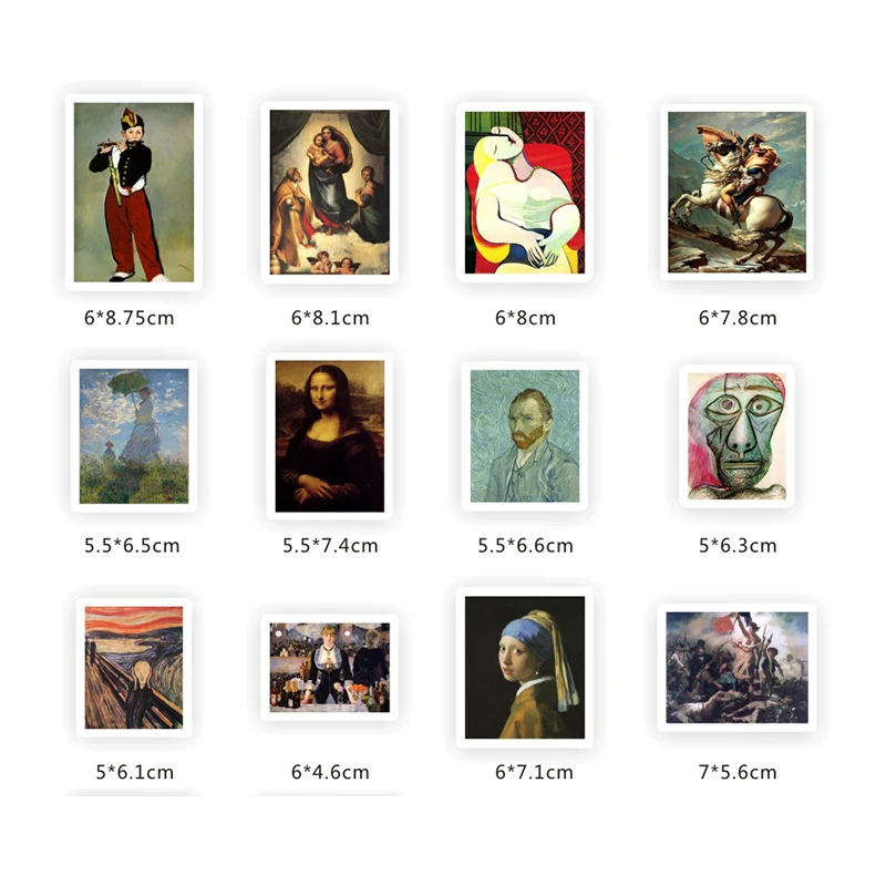 Addition Information of 24 PCS Van Gogh painting sticker famous arts Mona Lisa portrait oil pattern Waterproof decorative sticker