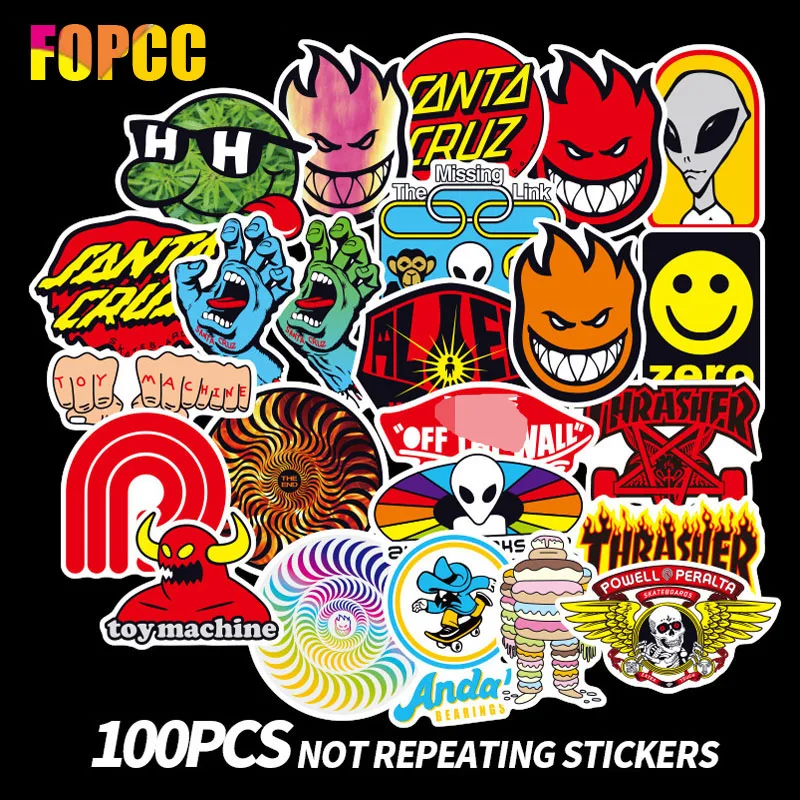 .Gallery of 100 PCS pack Skateboard Fashion brand Logo Waterproof Sticker For Luggage Car Guaitar Skateboard Phone Laptop Bicycle Stickers